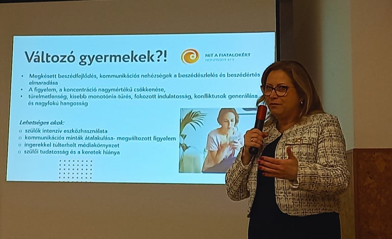 A Digitális tudatosság és Ifjúságvédelmi Oktatási Központ vezetője előadásában a digitális eszközök óvodás korosztályra gyakorolt hatásait, a generációs különbségeket, valamint a megváltozott médiakörnyezetből adódó kihívásokat és lehetőségeket mutatta be. Kiemelt hangsúlyt kapott a gyermekek életkori sajátosságaihoz igazodó, tudatos és felelős eszközhasználat szerepe, és a szülők, és oedagógusok példamutatása.