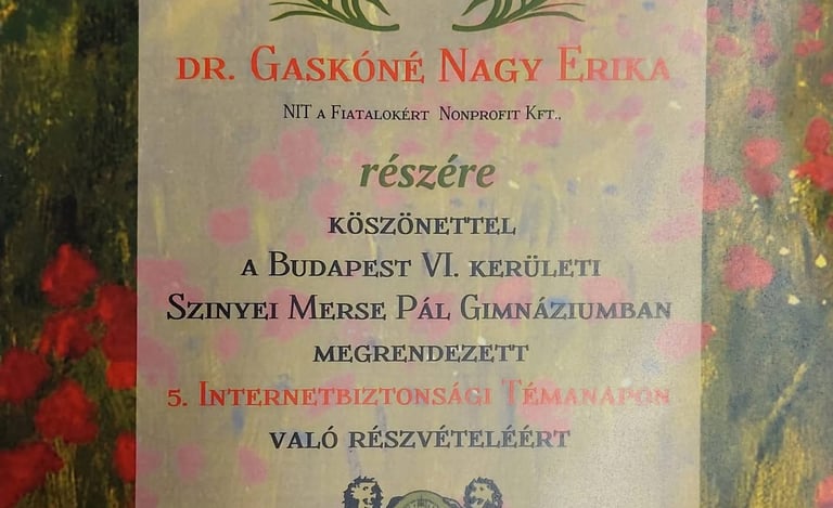 Szívből gratulálunk a kezdeményezéshez és a magas színvonalú szervezéshez. Külön köszönet illeti Nagy-Szakál Zoltán főszervezőt (Digitális és Vizuális Munkaközösség vezető), aki elkötelezetten és példaértékű módon képviseli az online biztonság és digitális tudatosság ügyét.